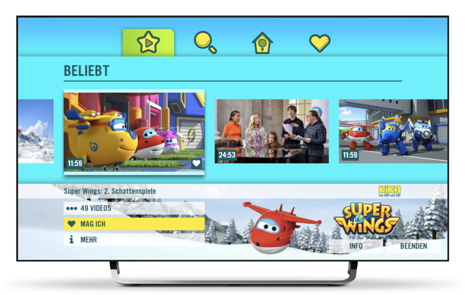 Ermöglichung für Unitymedia-Kund:innen, Kinder-VoD-Inhalte von ARD, ZDF und KiKA innerhalb des KiKA-Players abzurufen.