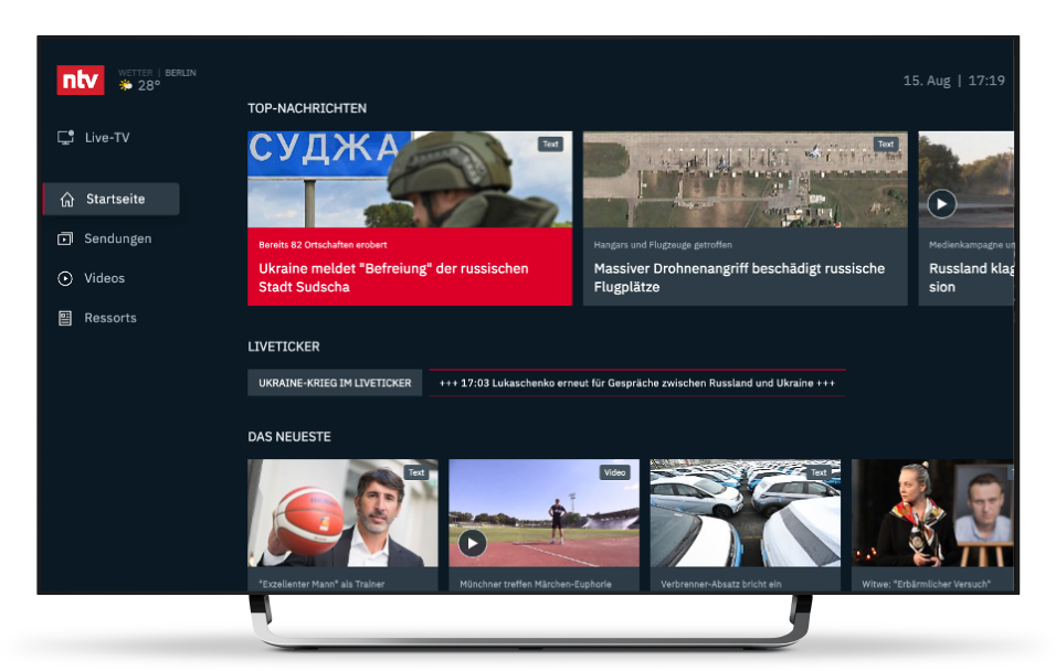 Die ntv-App, ein bekanntes HbbTV-Nachrichtenportal, erkannte die Notwendigkeit, ihre Plattform zu modernisieren, um wettbewerbsfähig zu bleiben und den Nutzererwartungen gerecht zu werden. Das Projekt verfolgte zwei Hauptziele: