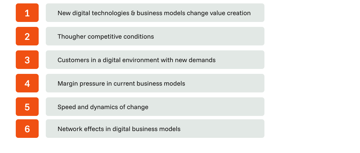 In der Praxis zeigt sich allerdings immer wieder: Die digitale Transformation erfordert zunächst den Mut, bereit zu sein, bisher erfolgreiche Geschäftsmodelle über Bord zu werfen und den Status Quo des Kerngeschäfts und der Wertschöpfungsprozesse zu hinterfragen. Aber genau darum geht es. Produkte, Abläufe und Dienstleistungen, die jahre- oder jahrzehntelang für hohe Umsätze und auskömmliche Margen sorgten, müssen auf den Prüfstand. Die neue Grundhaltung führt schließlich dazu, dass nicht mehr nur Technologien und Prozesse im Mittelpunkt stehen, sondern ein begleitendes Change Management für die gesamte Belegschaft bis in die höchste Führungsebene etabliert wird.