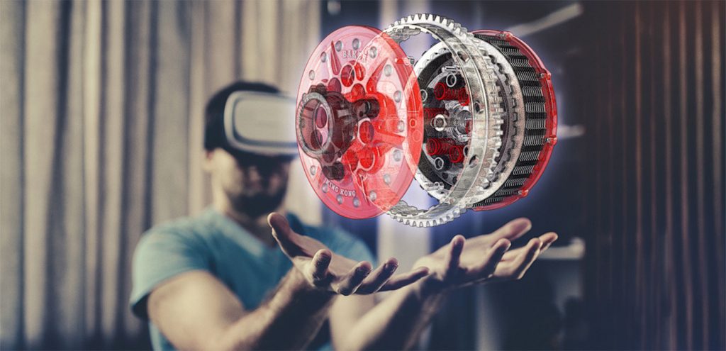 Virtual Realität (VR) lässt User*innen im Gegensatz zur Augmented Reality vollständig in eine simulierte digitale Umgebung eintauchen und hat – anders als AR – gar nichts mehr mit der realen Welt zu tun. Ein VR-Headset oder ein am Kopf befestigtes Display sorgt für eine 360-Grad-Ansicht einer künstlichen Welt, die das Gehirn täuscht und den Usern vorgaukelt, sie würden z.B. den Mars besteigen, in der Tiefsee tauchen oder in die neue Welten eintreten. Die Spiel- und Unterhaltungsindustrie hat diese Technologie schon früh übernommen; Unternehmen verschiedenster Branchen wie dem Gesundheitswesen, dem Bauwesen, dem Maschinenbau, dem Militär ziehen nach.