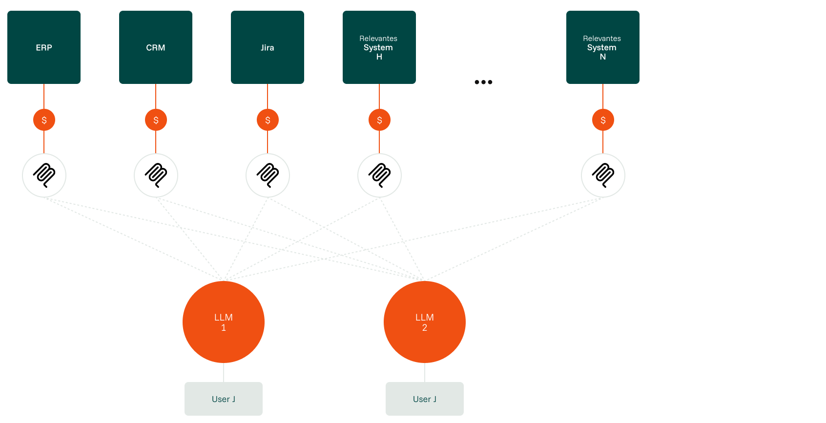 The problem compounds exponentially. If you introduce a different AI model tomorrow (switching from GPT-4 to Claude, for example) or add a new internal tool, you have to rebuild those bridges. This leads to a spaghetti architecture where costs and complexity scale non-linearly with every new use case.