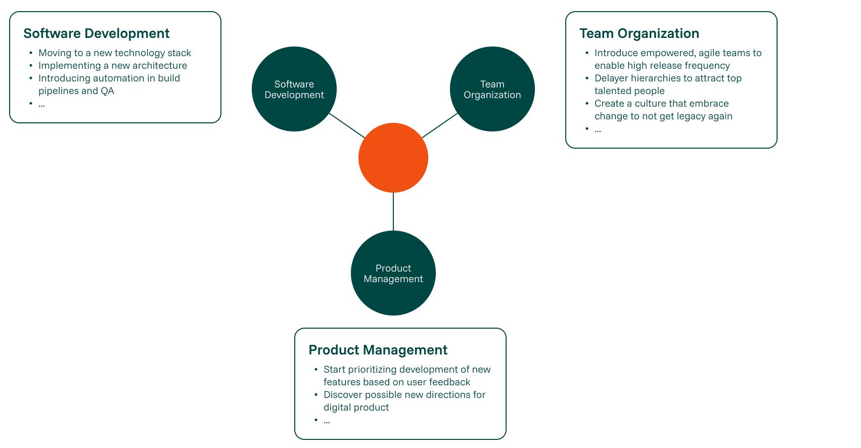 Another challenge is the product management. In legacy IT organizations there was often no differentiation between software development and product management. The question WHAT do build was made by the same people that answered the question HOW to build it. In modern organizations product management is a profession of its own including market research, getting early user feedback and priorising the most promising features for the next development phase.