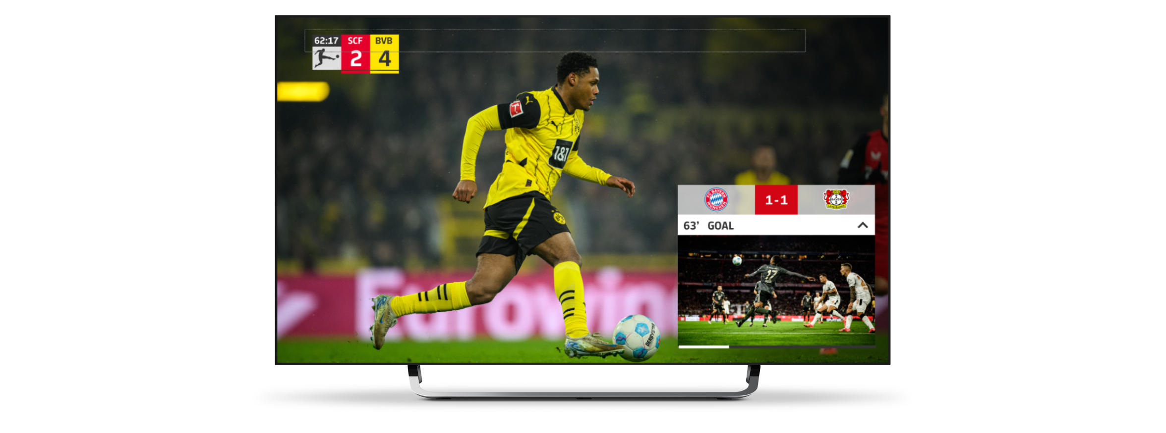 In collaboration with DFL (Deutsche Fußball Liga), we developed and launched the Interactive Feed, a groundbreaking solution that redefined how football fans engage with live matches. Designed to enhance viewer interaction, the Interactive Feed introduced a seamless blend of real-time data, dynamic visual overlays, and customisable match insights - all within a single interface.